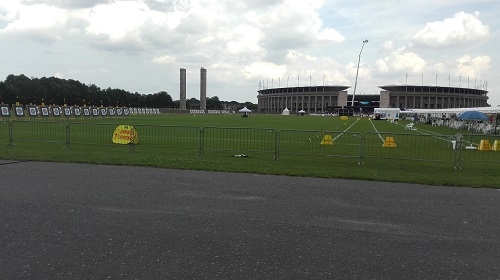 Bei der Veranstaltung in und um das Berliner Olympiastadion wurden medienwirksam 10 Deutsche Meisterschaften gleichzeitig ausgetragen. Neben Bogenschießen gab es für die Zuschauer auch Leichtathletik, Kanu, Schwimmen, Trial, Triathlon, Boxen etc. zu sehen. Auf dem Maifeld vor dem Olympiastadion standen 90 Bogenscheiben, so viele, wie noch nie bei einer Deutschen Meisterschaft. Das Maifeld war einst der Aufmarschplatz der Nazionalsozialisten und ist mittlerweile eine mehrere Fußballfelder große Rasenfläche. Die Zuschauerränge haben noch das Flair der 30-er Jahre und sind heute gesperrt. Die Bemühungen um eine Sanierung der Anlage unter dem Glockenturm sind aber deutlich zu erkennen.![]()