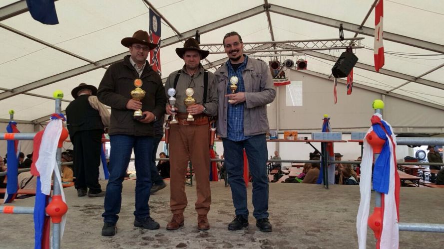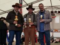 Auch am Samstag und Sonntag fand das 37. Internationale Vorderladerturnier statt, wo wir traditionell alle teilgenommen haben, einzeln und auch als Mannschaft. Der Tradition verpflichtet, haben wir auch dieses Jahr folgende Pokale mitnehmen können: 1. Platz Perkussionskurzwaffen, 2. Platz Perkussionskurzwaffen, 3. Platz Perkussionskurzwaffen, 2. Platz Perkussionslangwaffen und das erste mal ein Pokal für "Die Stärkste Mannschaft"!!! Zu erwähnen sind noch die beiden ersten Plätze von Emil in Perkussionspistole (49) und Perkussionsrevolver (49) und der zweite Platz von Ebbo in Perkussionsgewehr geschlossene Visierung (49). Als Schmankerl dienten die Ziele für die Perskussionsgewehre mit offener Visierung auf 50m: Büffel, Bär und Hirsch - hier hat sich Emil mit seiner Hawken und Rundkugel gegen den bisher unschlagbaren Ebbo mit seinem Dienstgewehr und Minié-Geschoss doch durchsetzten können - und wären im Wilden Westen überlebensfähig gewesen!!!