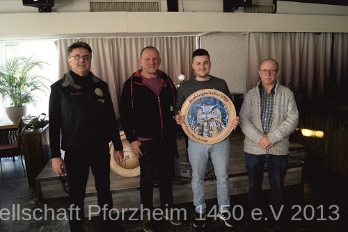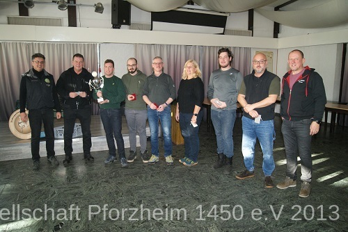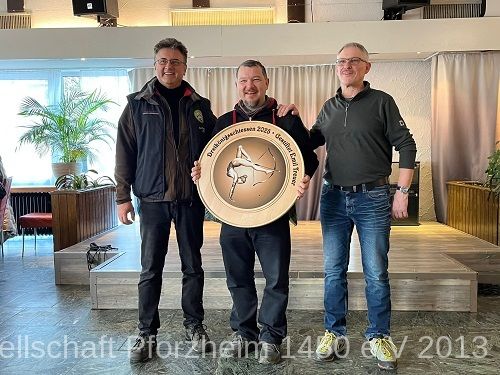 Die von Claudius Arndt und Philipp Lichtenfels gestiftete und mit leuchtenden Farben bemalte KK-Kurzwaffen-Ehrenscheibe wurde mit einem 10,2er Treffer von Philipp Schlosser gewonnen – vor Stevan Iles (9,7) und Rolf Schill (9,4).
