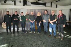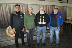 Wie auch letztes Jahr wurden die jeweils 10 besten Vorderlader-Sportler in Kurz- und Langwaffen mit wertvollen Trophäen geehrt: historische Silbermünzen aus vergangenen Jahrhunderten. Unser Schriftführer und Numismatik-Fachmann Bodo Binder hat 20 besondere Silberstücke zusammengetragen; dieses Jahr gab es erneut Amerikanische Silberdollar für die Erstplatzierten, Kennedy-Halfdollars für die 2. und 3. Plätze sowie Quarters für die 4.- bis 10.-Platzierten. Alle anderen Teilnehmer durften die Sektkelche mit Moussierpunkt mitnehmen, die mit der Inschrift „2025“ graviert waren - um die Kollektion der letzen Jahre abzuschließen.