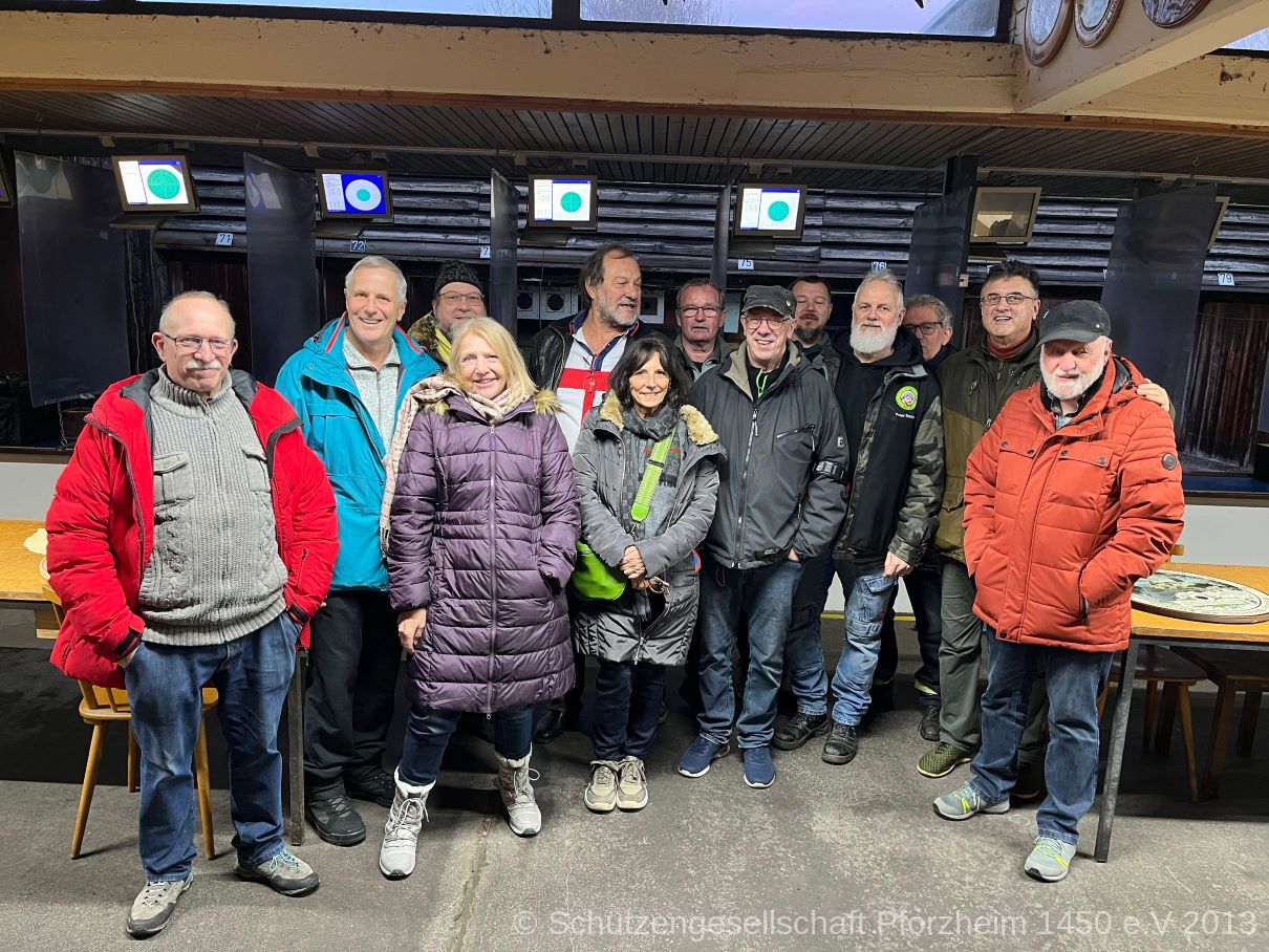 Wieder einmal ist ein Sportjahr zu Ende, und wie in jedem Jahr beenden wir es mit dem traditionellen Ehrenscheibenschießen, welches wir in diesem Jahr um ein Jubiläumsschießen zum 575-Jährigen Vereinsjubiläum erweitert haben. Neunzehn unverfrorene Protagonisten ließen sich vom unseligen Novemberwetter nicht abschrecken und fanden sich am 29.November im Schützenhaus zum gesellschaftlichen Jahresausklang ein. Für die Aufwärmung sorgte der bereitgestellte Glühwein und so konnte es mit gutem Zielwasser ans Werk gehen.